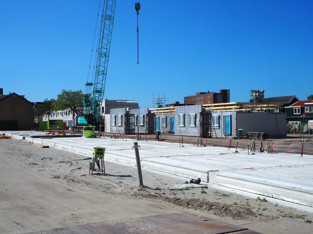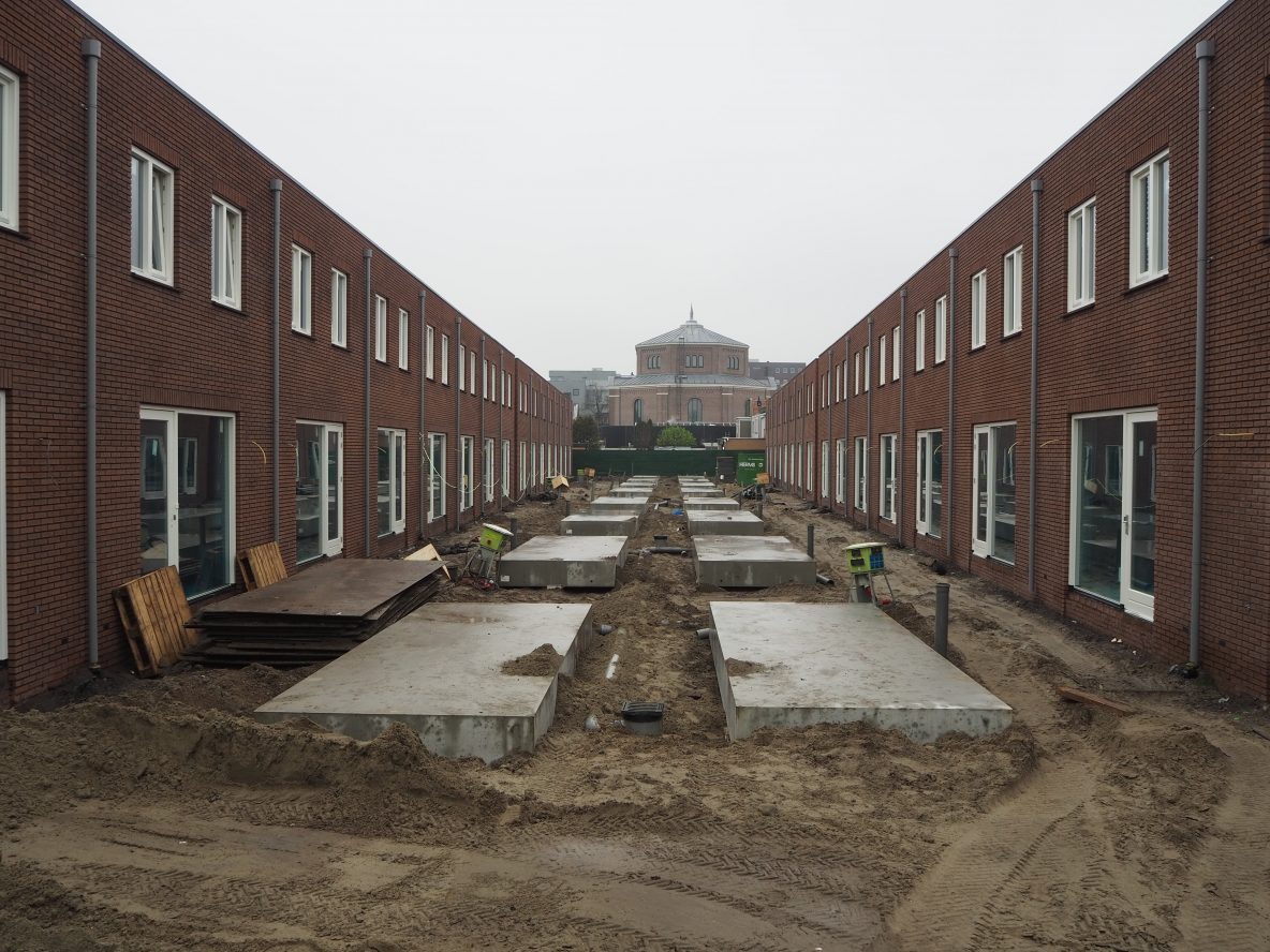 Rosmolenstraat: De betonplaten voor de neiuwe schuren zijn geplaatst