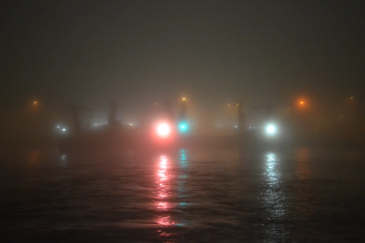 Noordzeekanaal: De lichtjes aan de Zaanse werden snel verzwolgen door de dichte mist