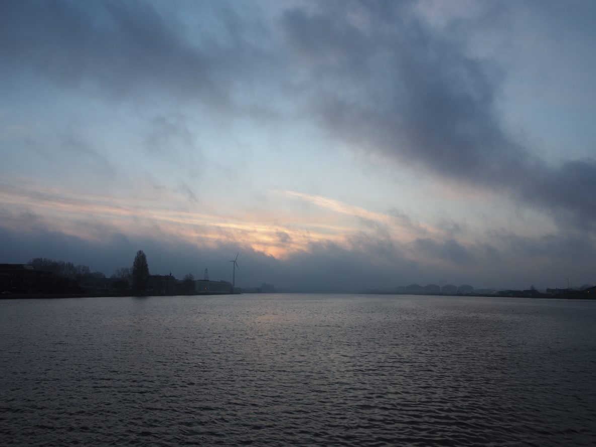 Hempont: De zon begint, boven het Noordzeekanaal, door de mist te dringen