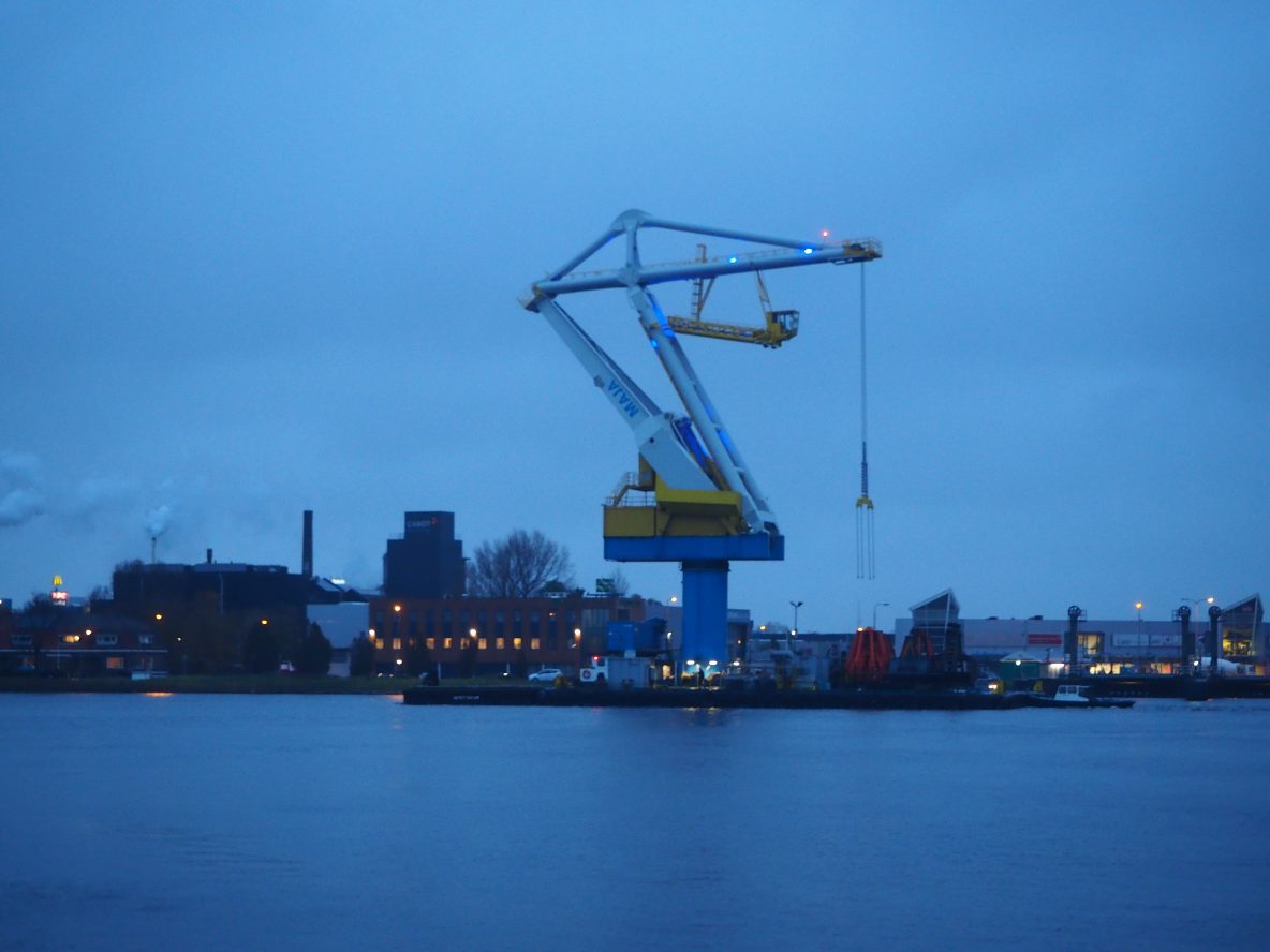 Noordzeeknaal: Een kraan van Maja stuwadooors vaart weer naar een nieuwe opdracht