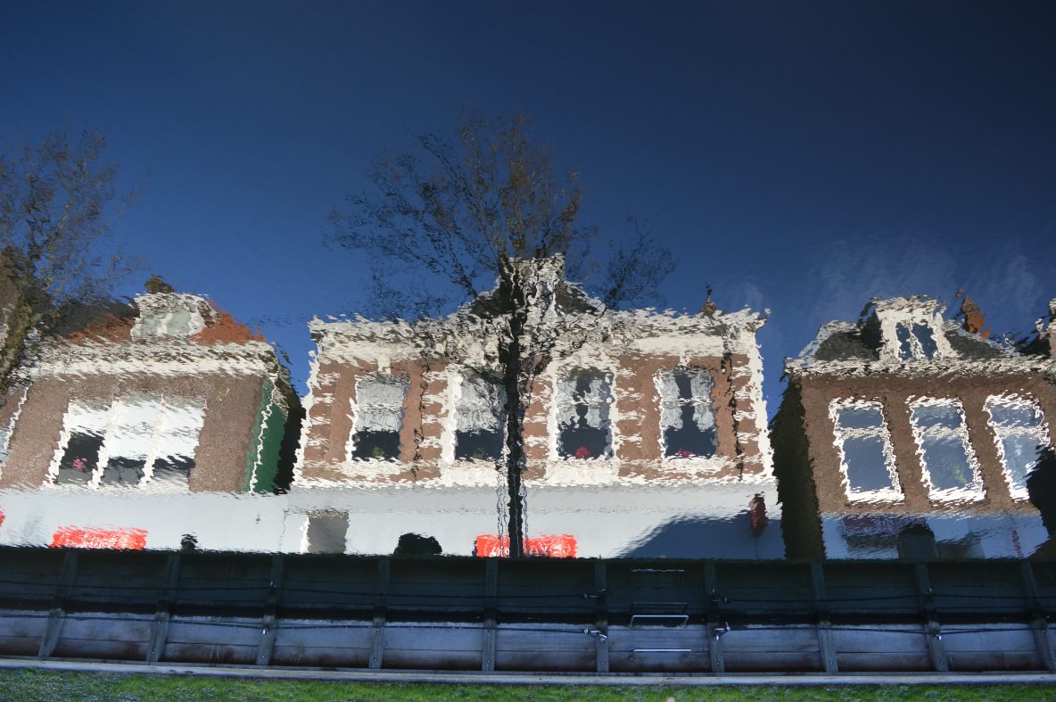 Gedempte gracht: Soms zijn er aparte spiegelingen te zien in het water van de gracht
