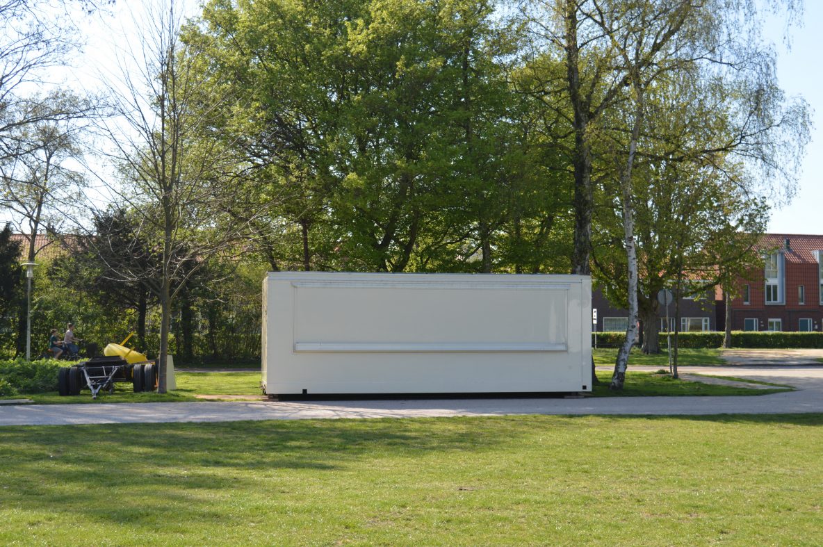Burg. In ’t Veldpark: De eerste wagens voor de kermis in het Veldpark zijn gearriveerd