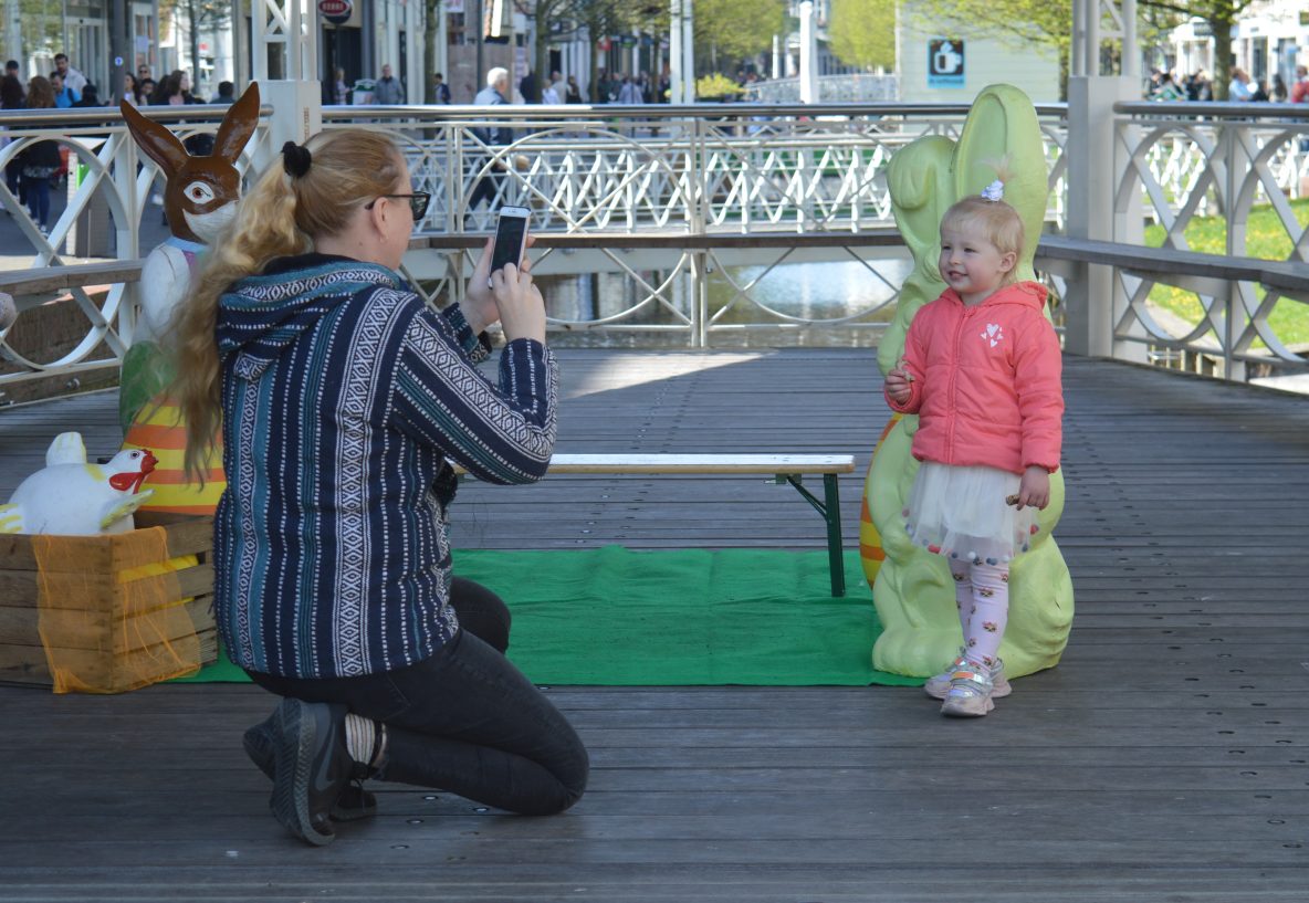 Gedempte gracht: Stadshart Zaandam had wat Paashazen neergezet waar iedereen bij kon poseren