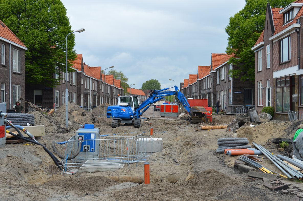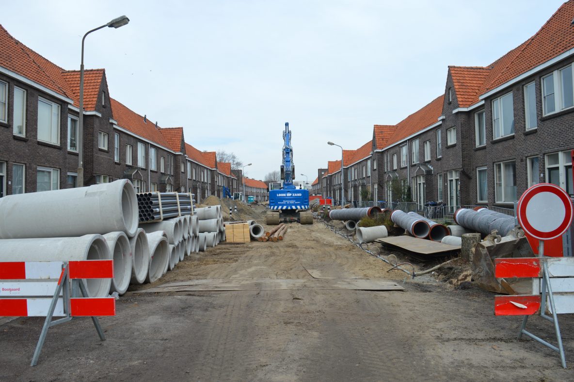 Rosmolenstraat: In een groot gedeelte van de Rosmolenbuurt wordt nu aan het riool gewerkt