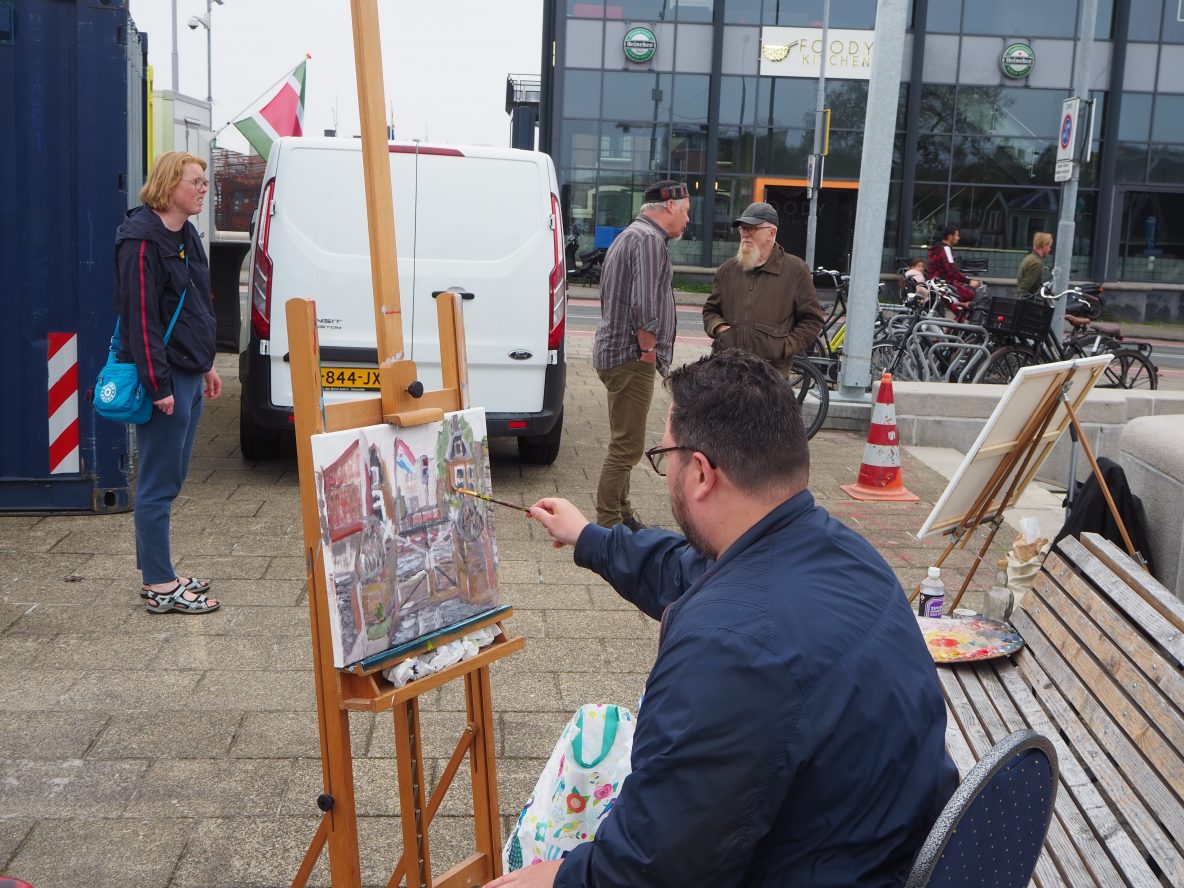 Beatrixbrug: Schilders aan het werk tijdens de opening van het Monet jaar