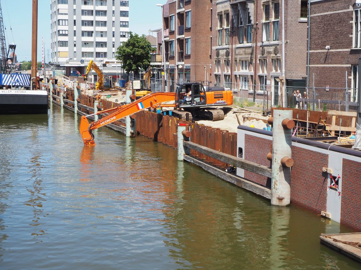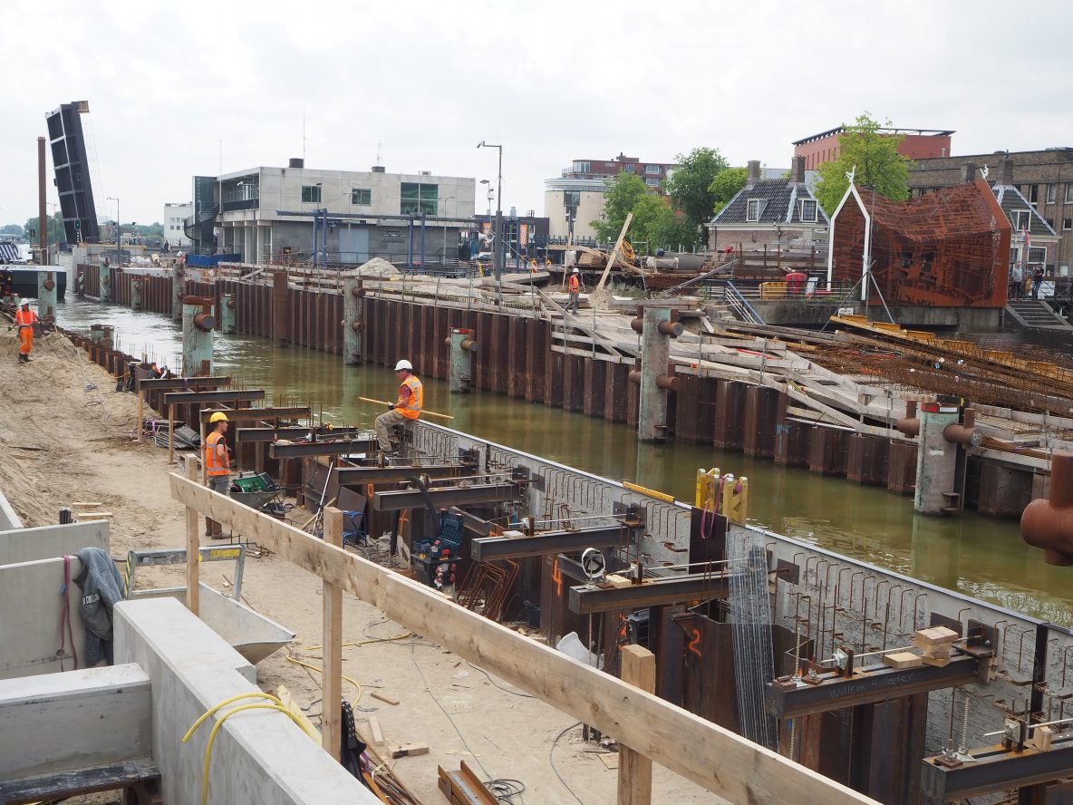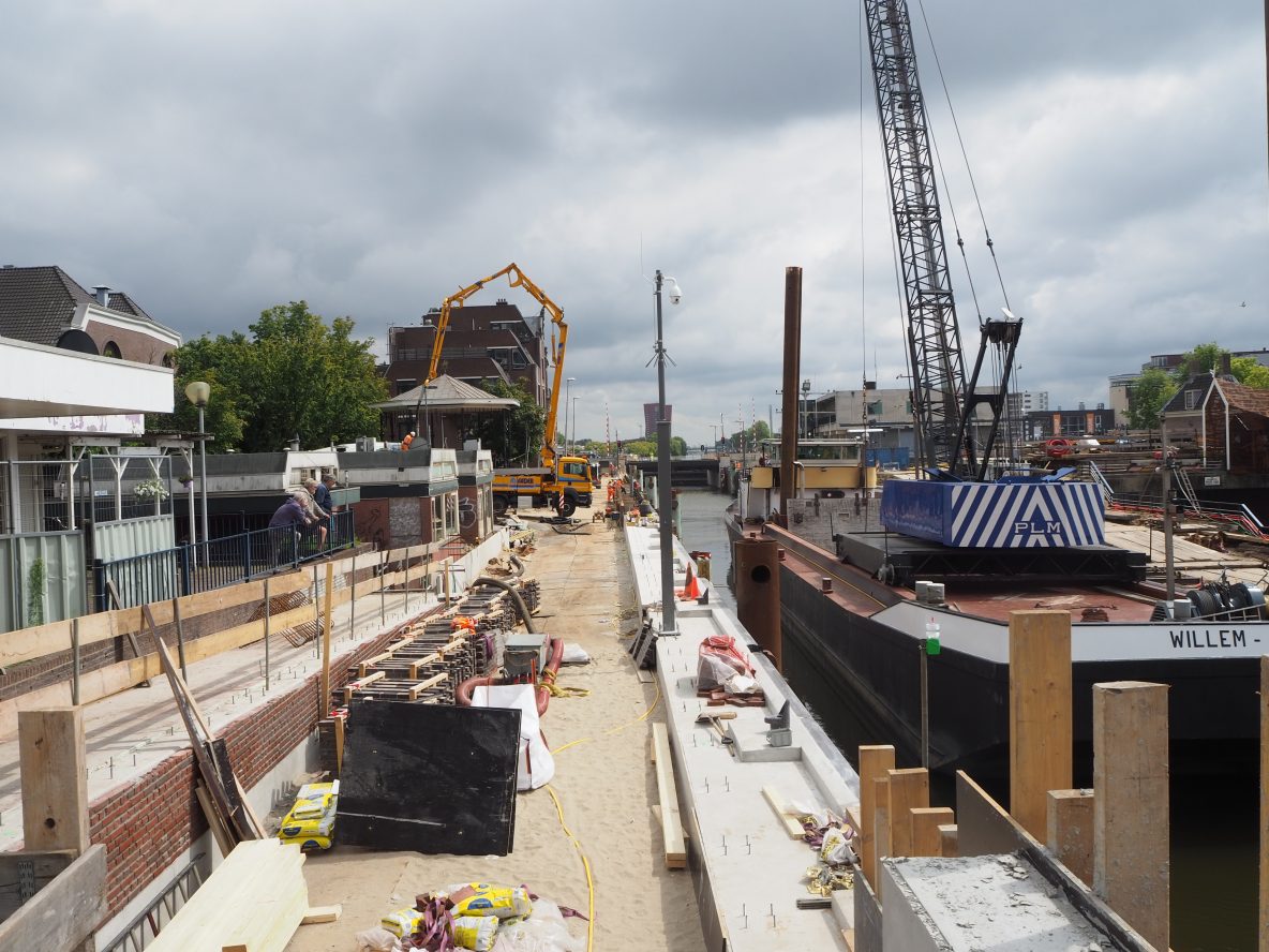 Wilhelminabrug: De kade muur vande nieuwe sluis bestaat uit voorzetwanden
