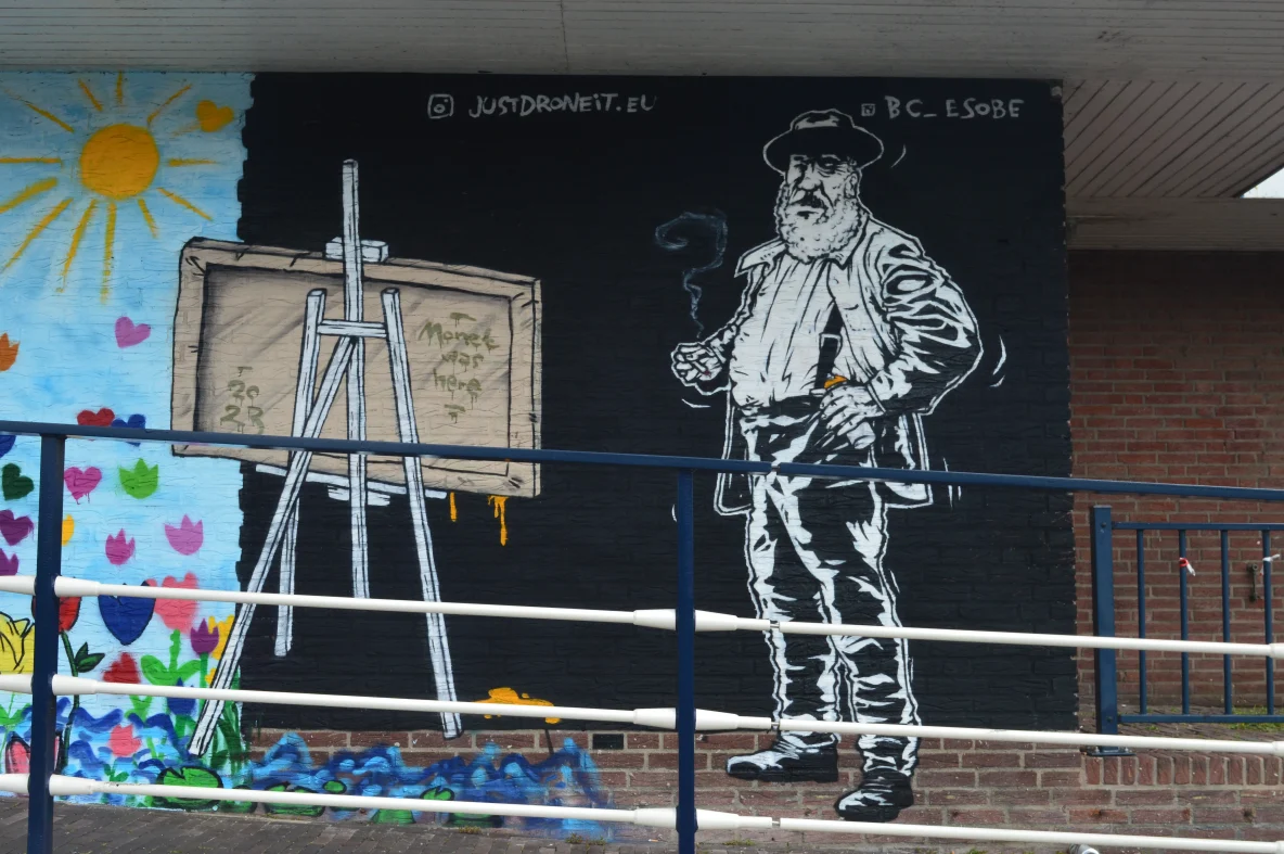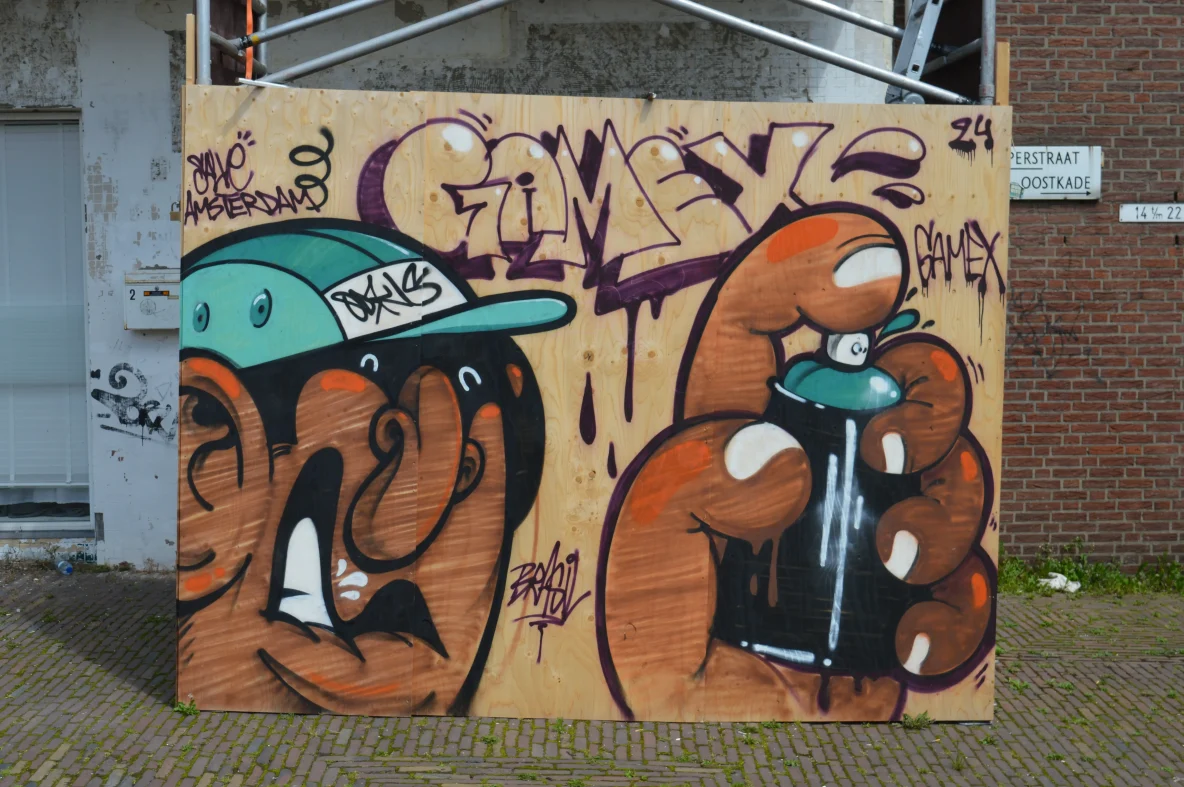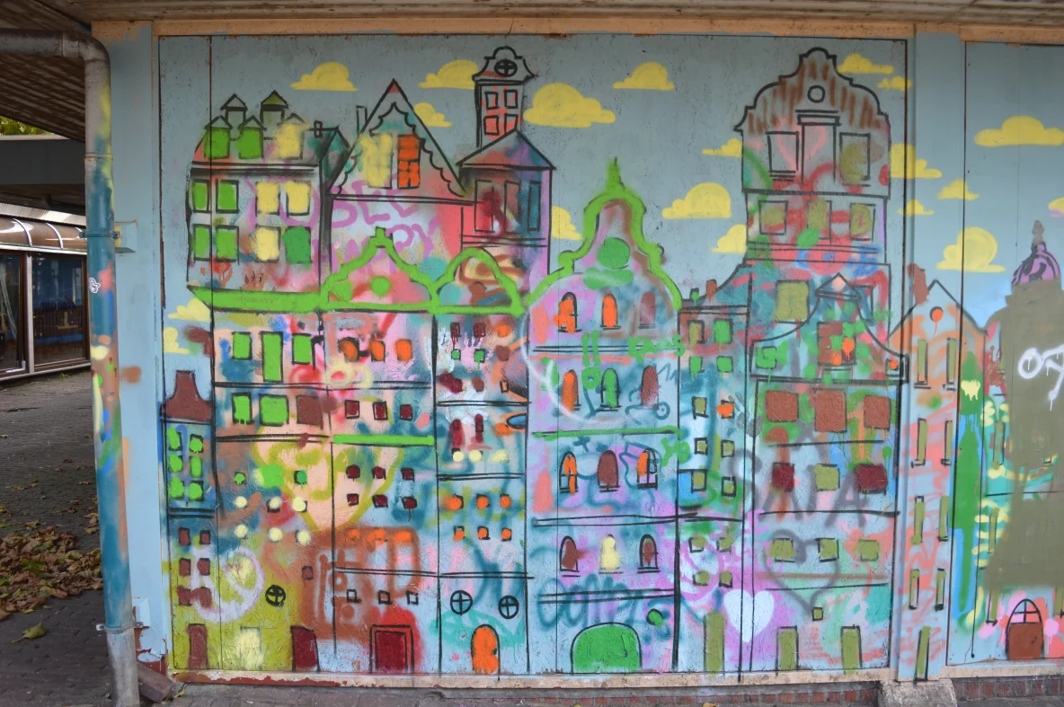 Ik vind grafitti letters vaak moeilijk te lezen, maar hier zou Drones moeten staan (naam van de maker, en het is nog niet helemaal af)