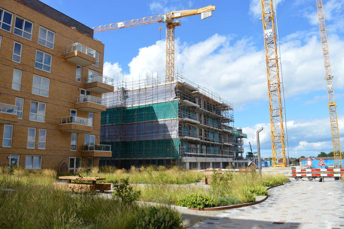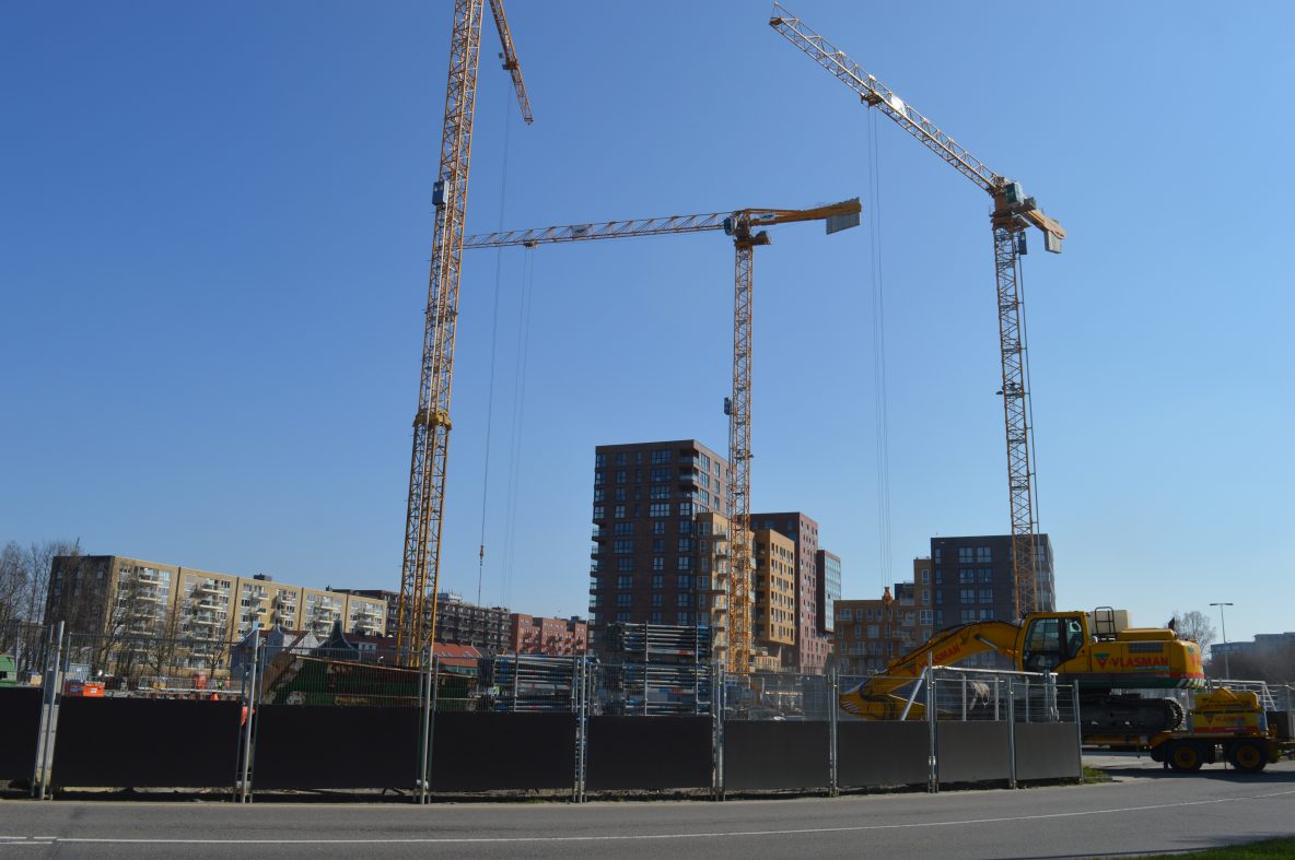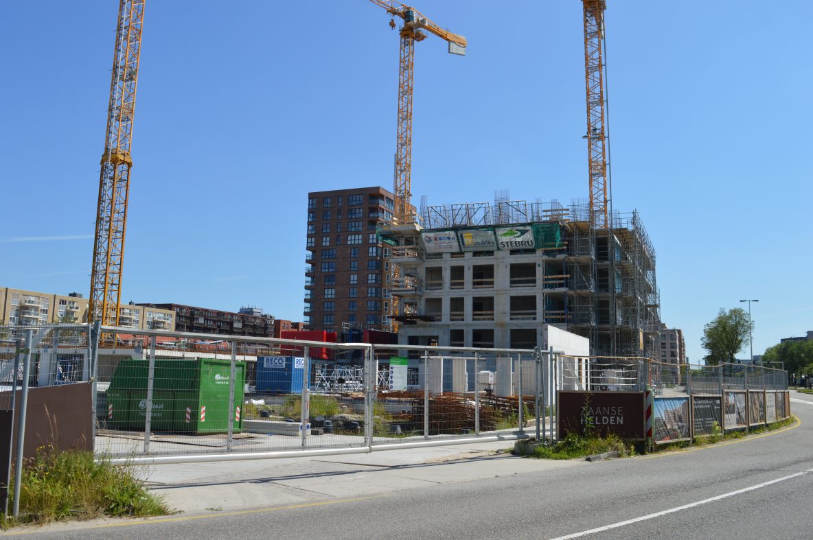 Houtveldweg: Drie enorme kranen sieren de bouwplaats van de Zaanse helden