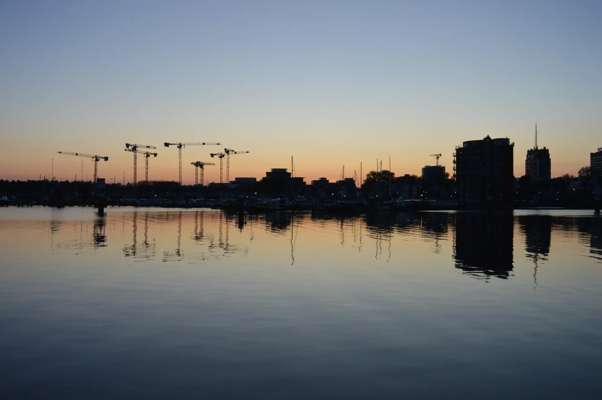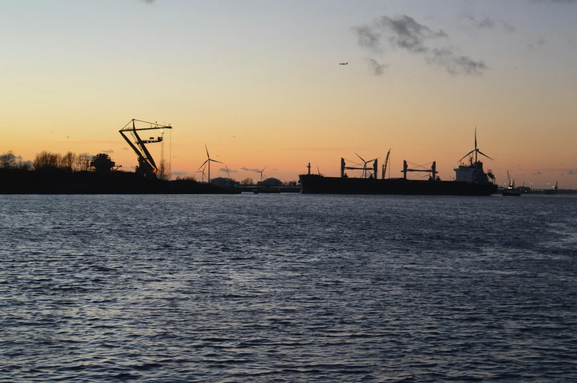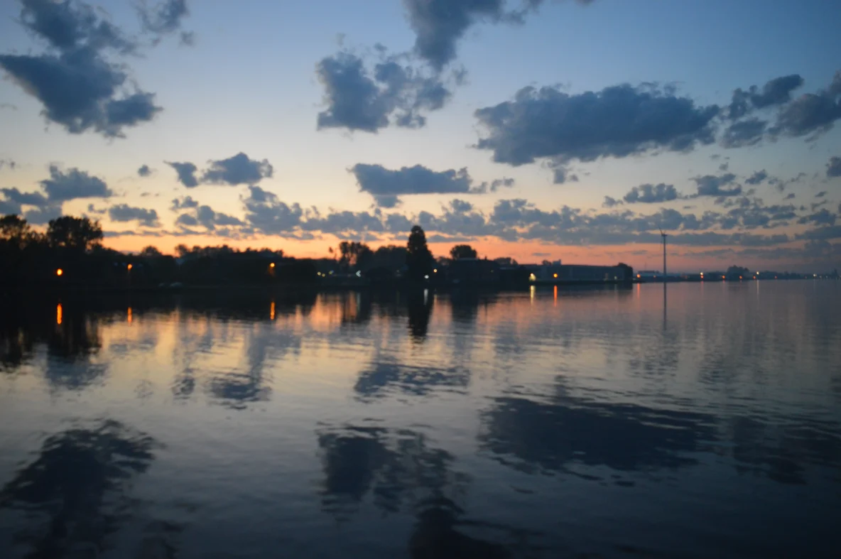 Zondag, 21 December 2025: Zonsondergang op de Voorzaan, maar nu met de Houthavenkade op de achtergrond