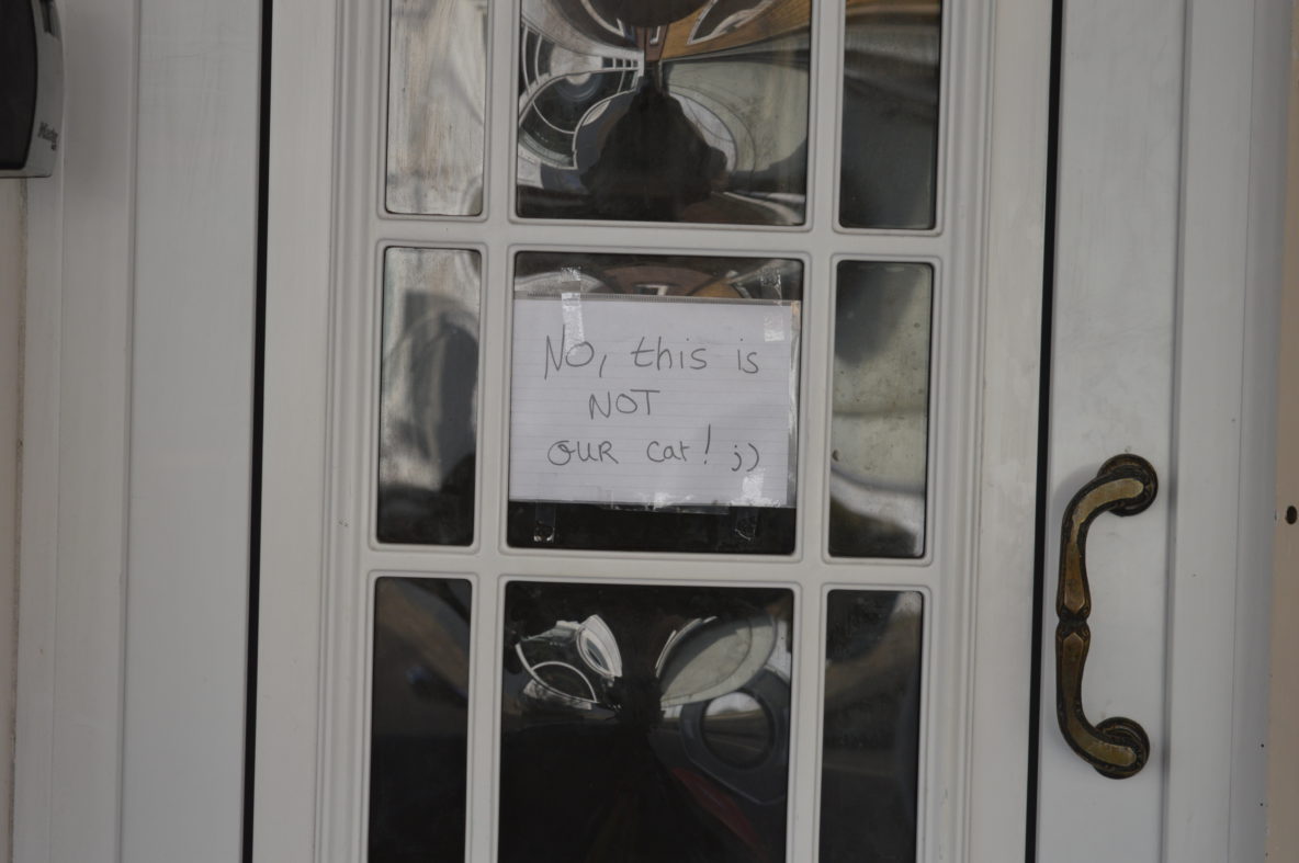 Iemand heeft posters van katten opgehangen op de Zuiddijk en Prins hendrikkade
